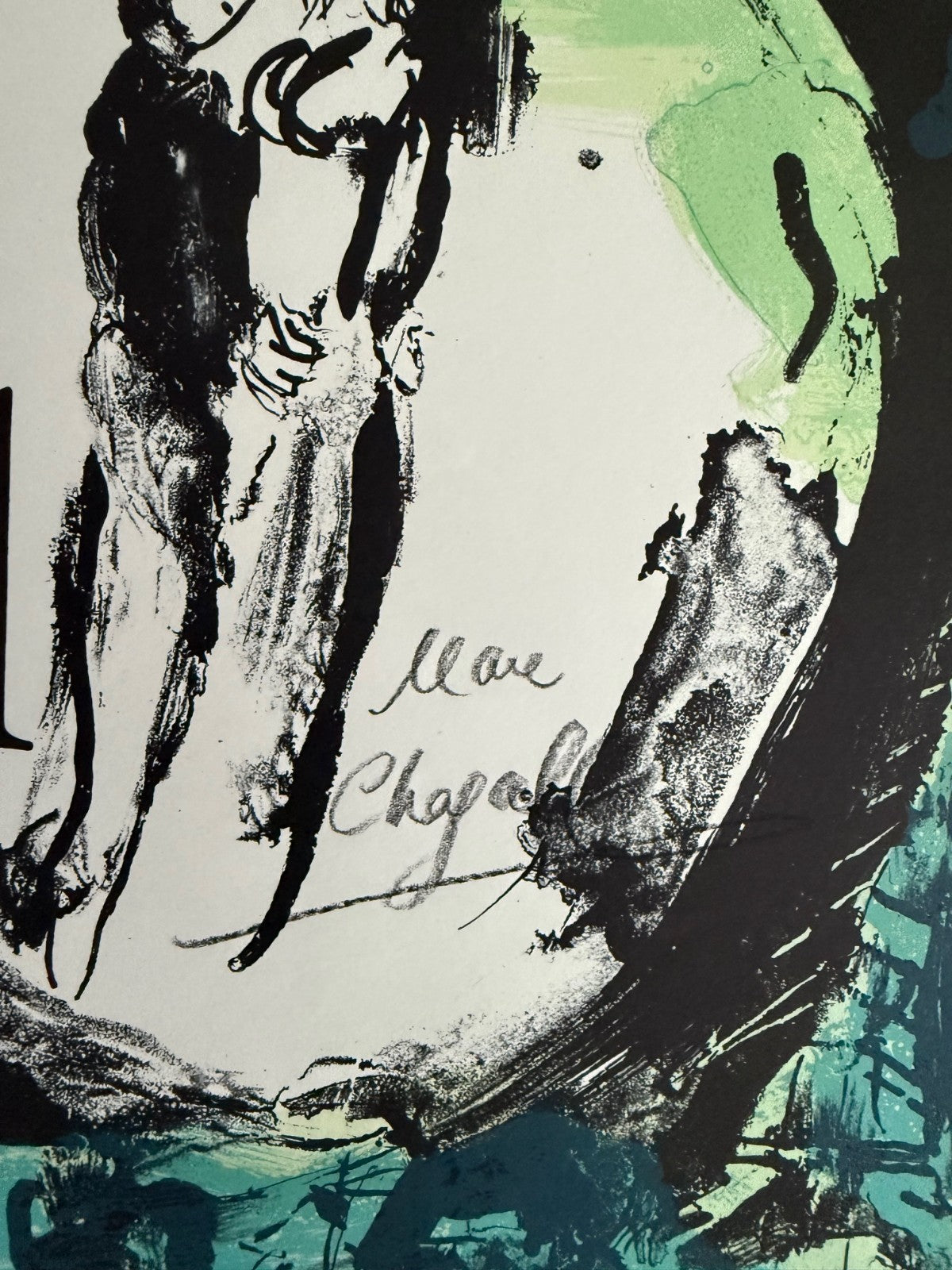 Hand-signed by Chagall. Given to his friend Martin Riskin/to Sy Kessler (autograph dealer)/to present owner.