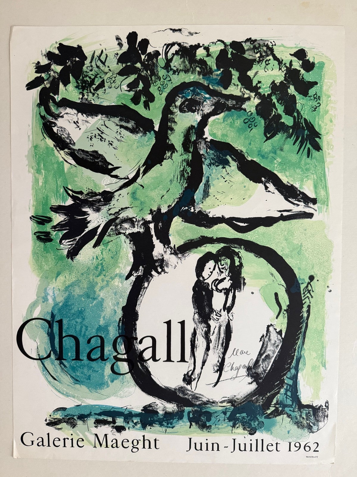 Chagall Hand-signed Exhibition Poster, The Green Bird, Printed by Mourlot