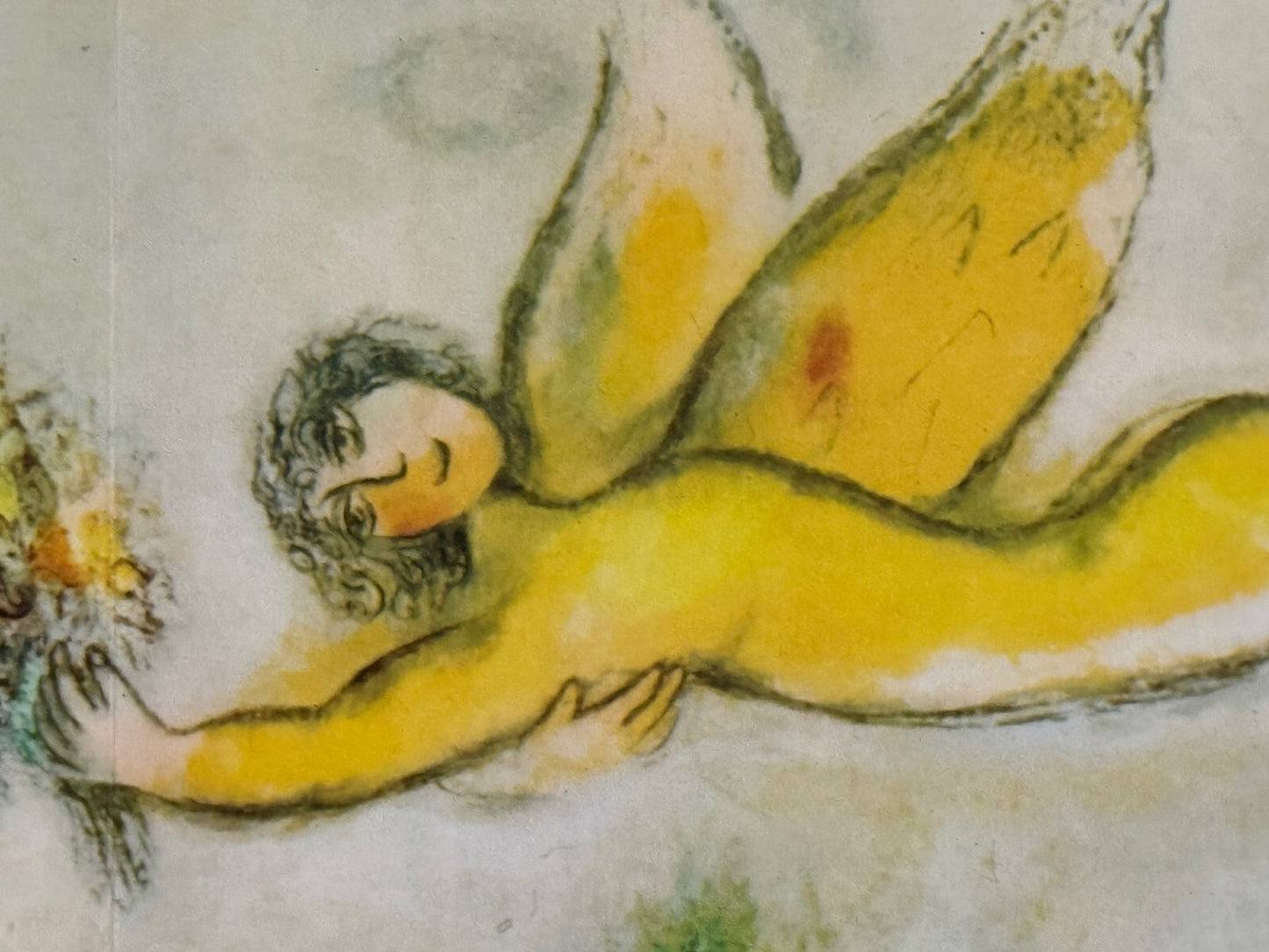 Chagall signed and gave this print to his friend Martin Riskin who gave it to Sy Kessler, and autograph dealer, from whom present owner purchased it.