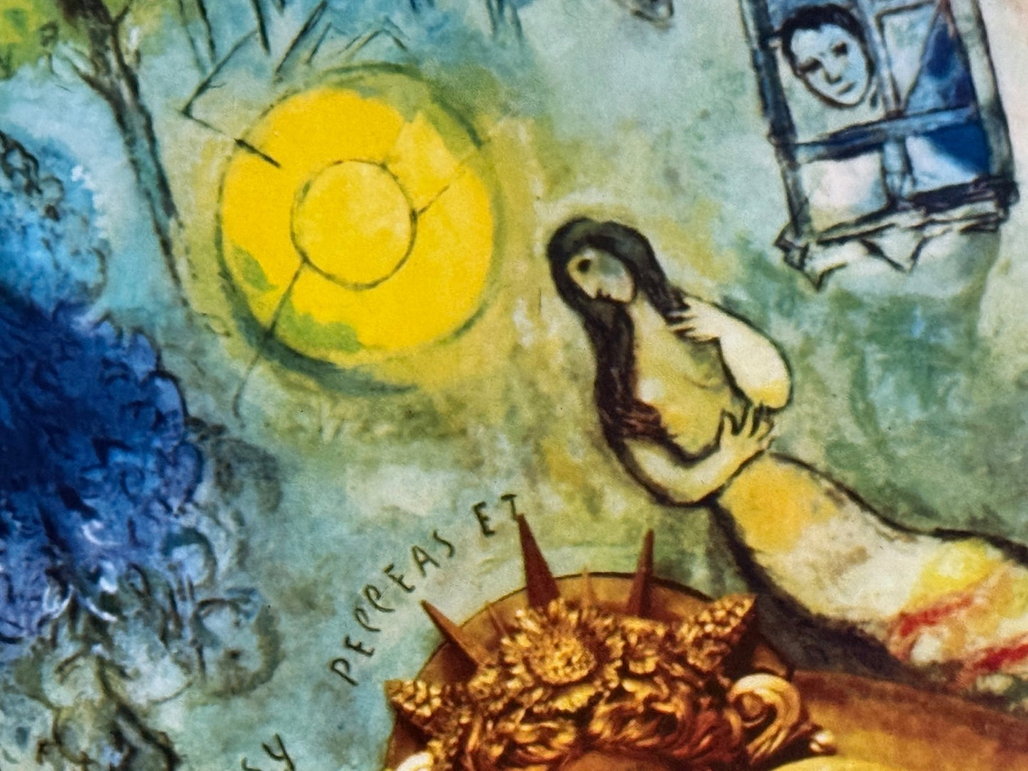 The image displays a detail from Marc Chagall's "The Ceiling of the Paris Opera" (also known as "Le Plafond de l'Opéra de Paris"), painted in 1964.