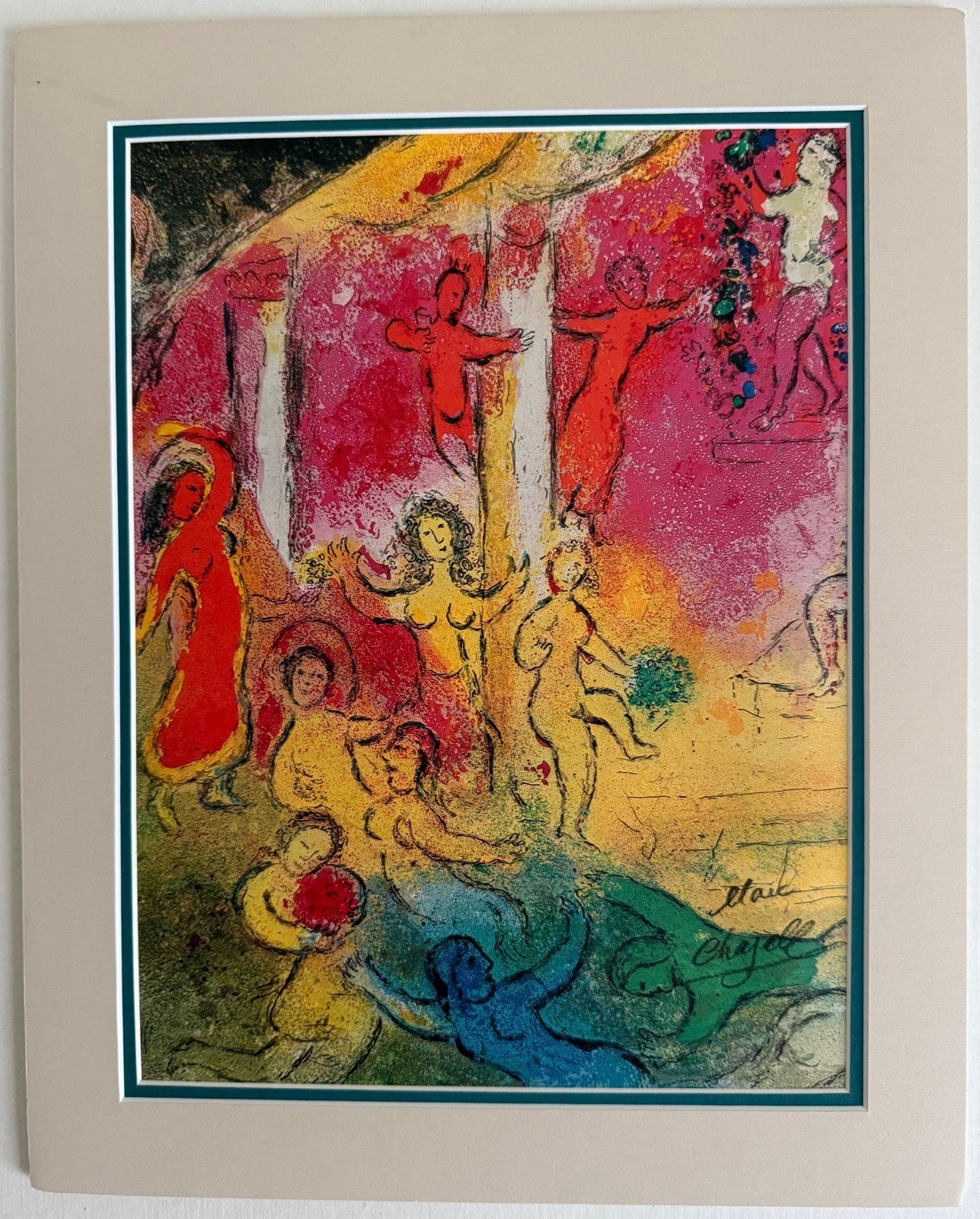 Chagall Hand-signed Print, Temple and History of Bacchus, Matted