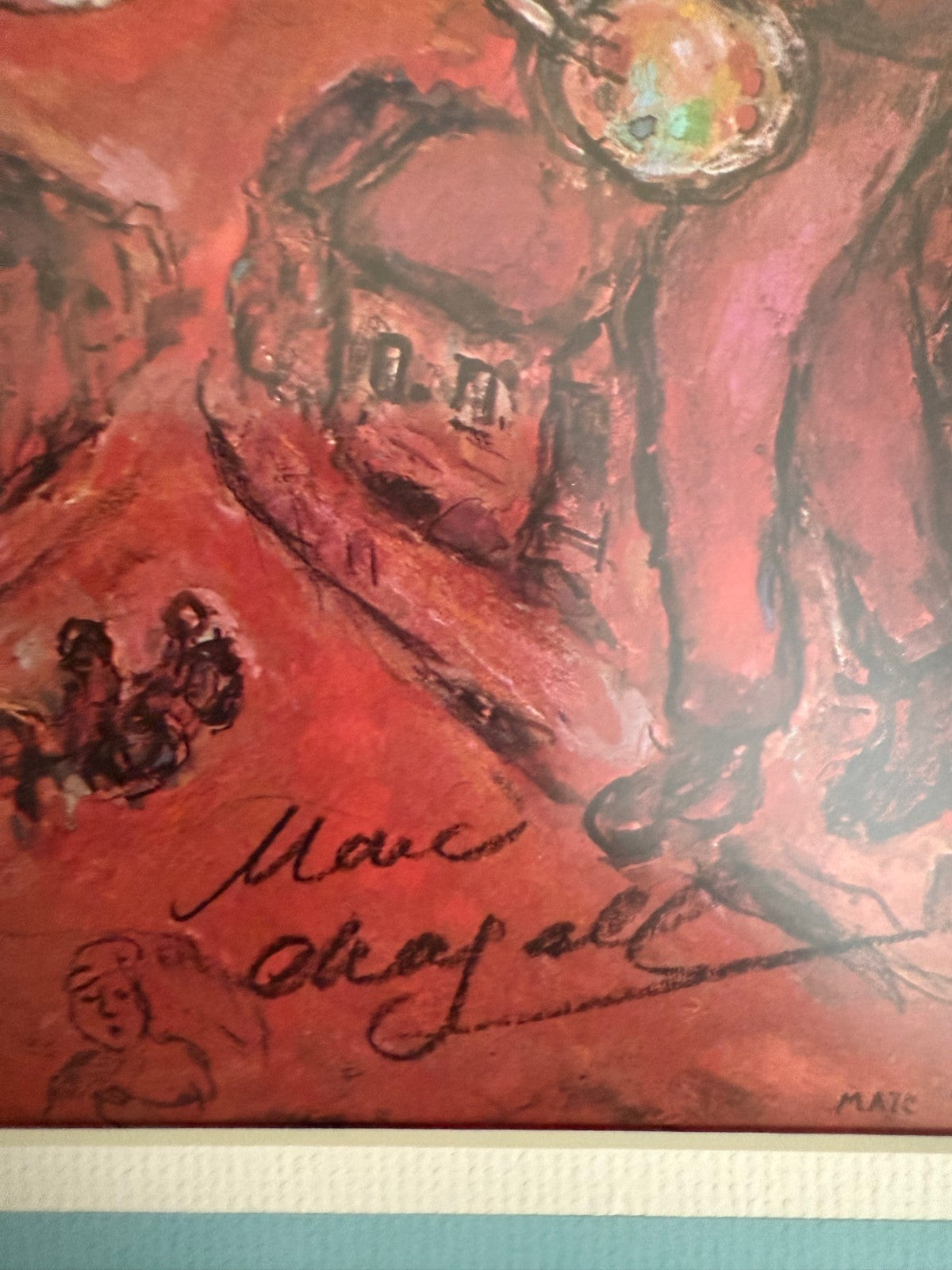 Chagall Hand-signed Print, The Easel, Matted