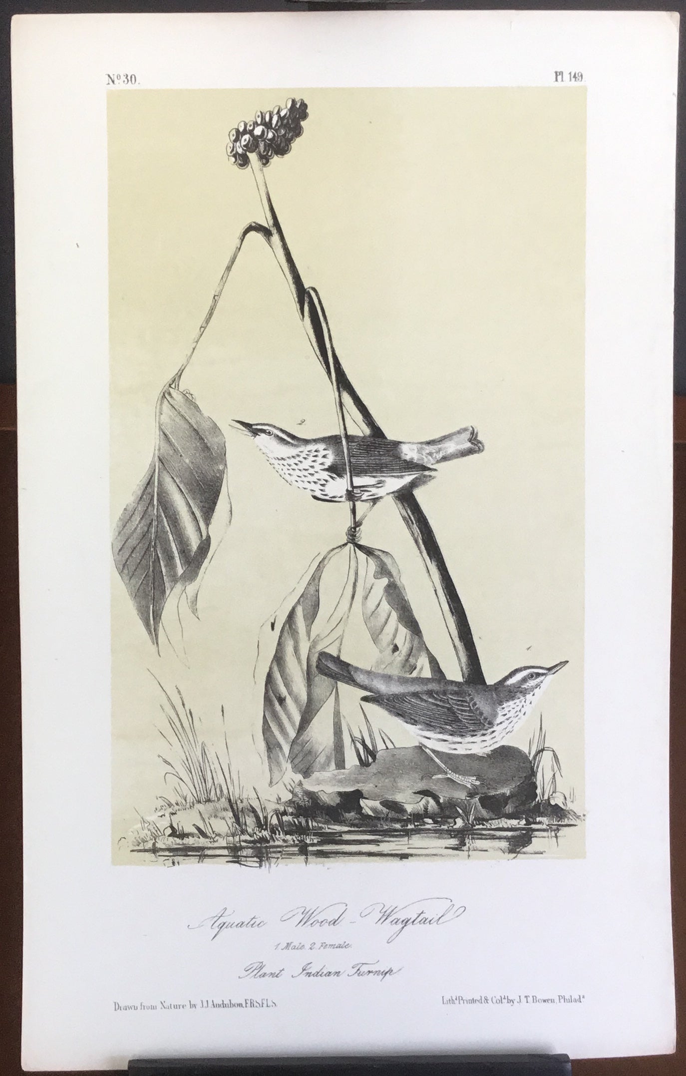 Audubon Octavo Aquatic Wood Wagtail, plate 149, uncolored test sheet, 7 x 11