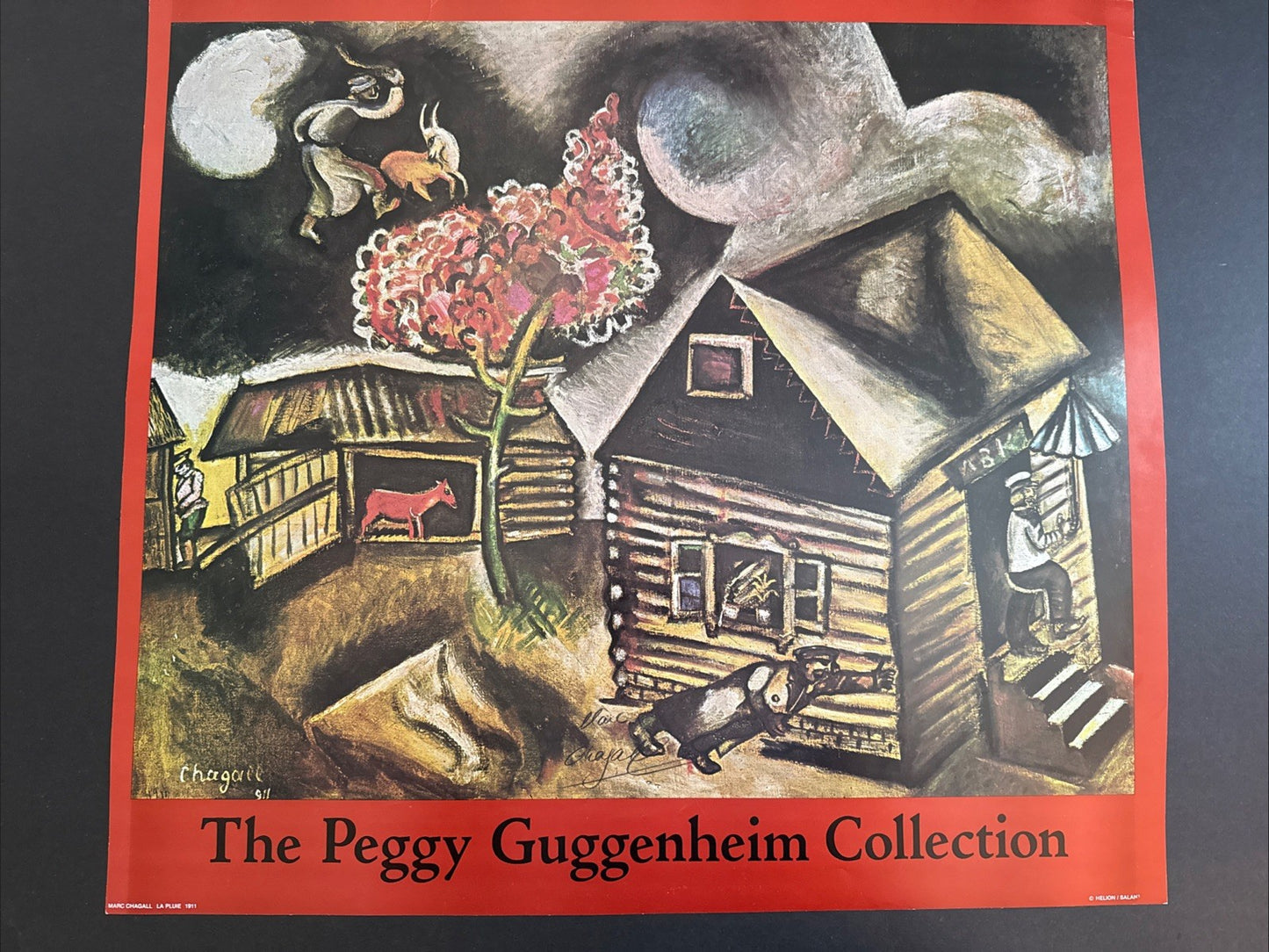 The image displays a poster for "The Peggy Guggenheim Collection" featuring Marc Chagall's painting "Rain (La Pluie)".