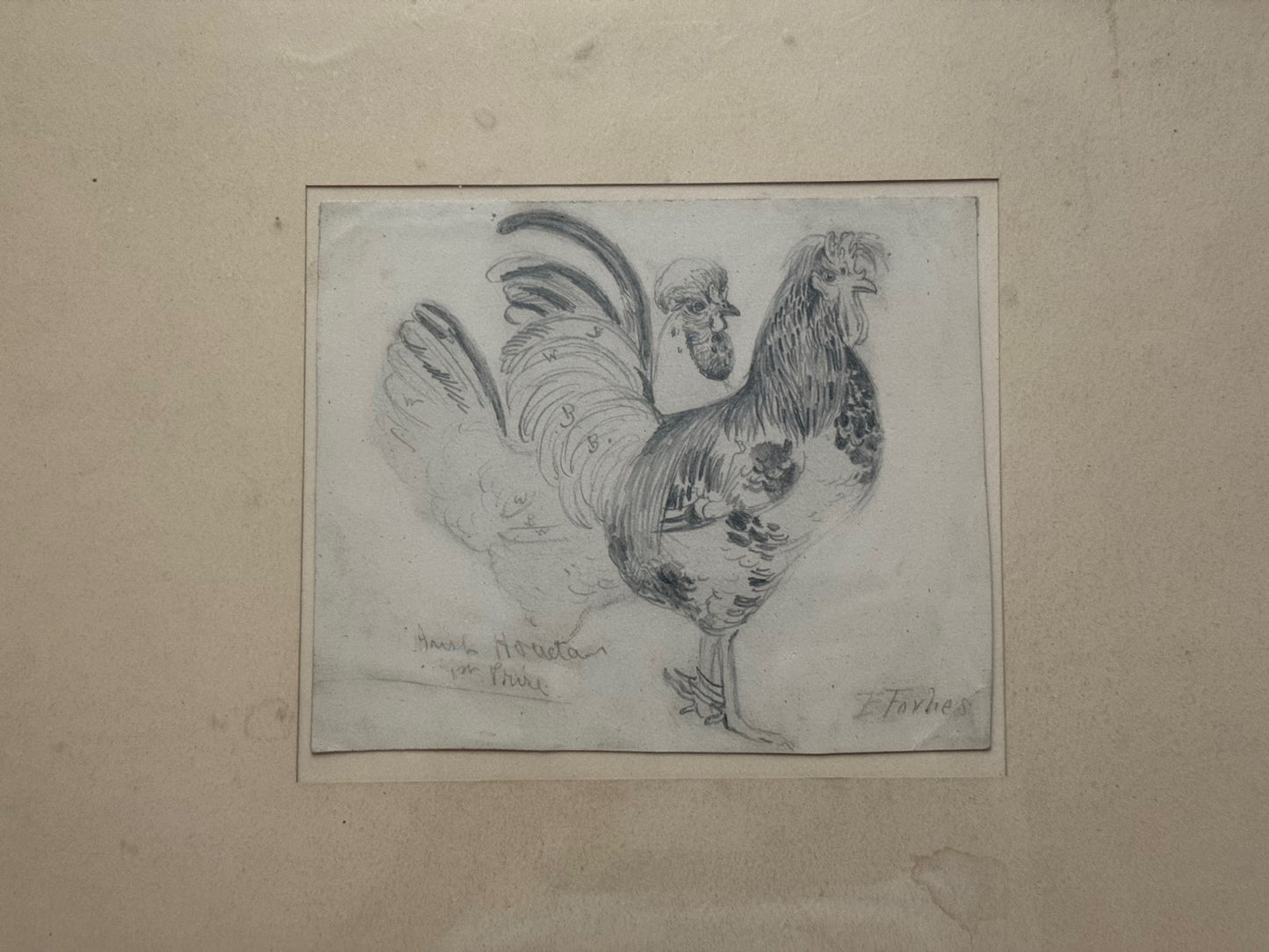 Rare pencil sketch of a rooster by Edwin Forbes, signed, c. 1870