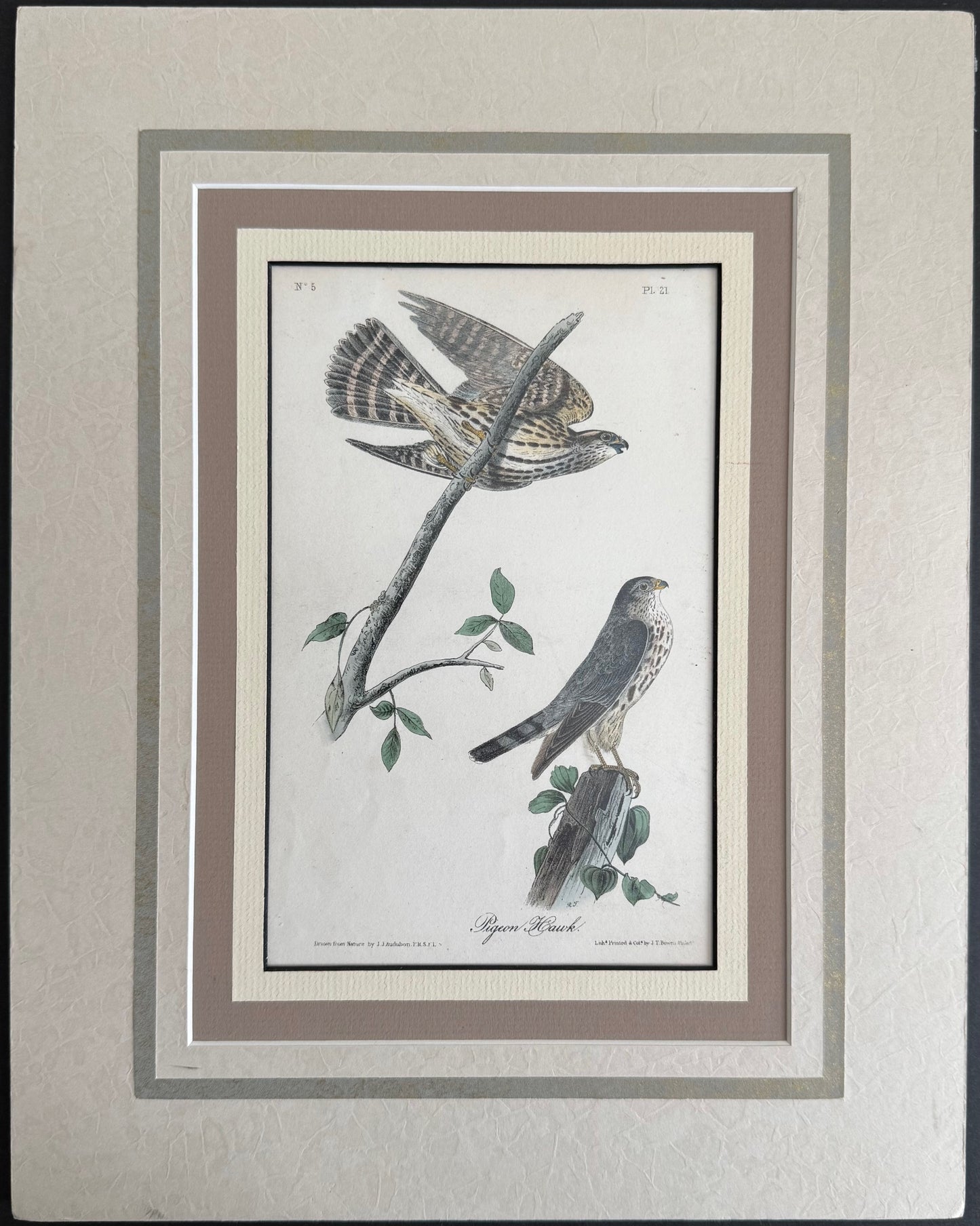 21 Audubon Original Octavo Pigeon Hawk, 2nd edition, matted