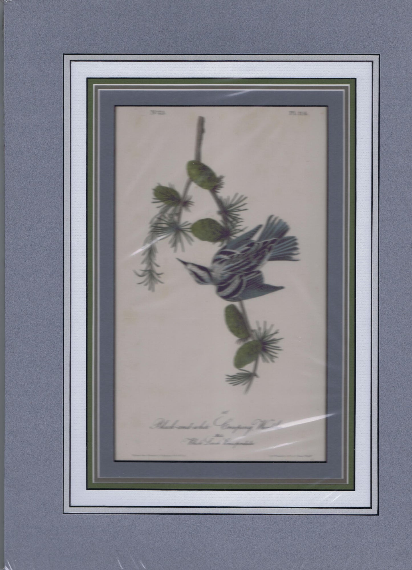 114 Audubon Original Octavo Black and White Creeping Warbler, matted