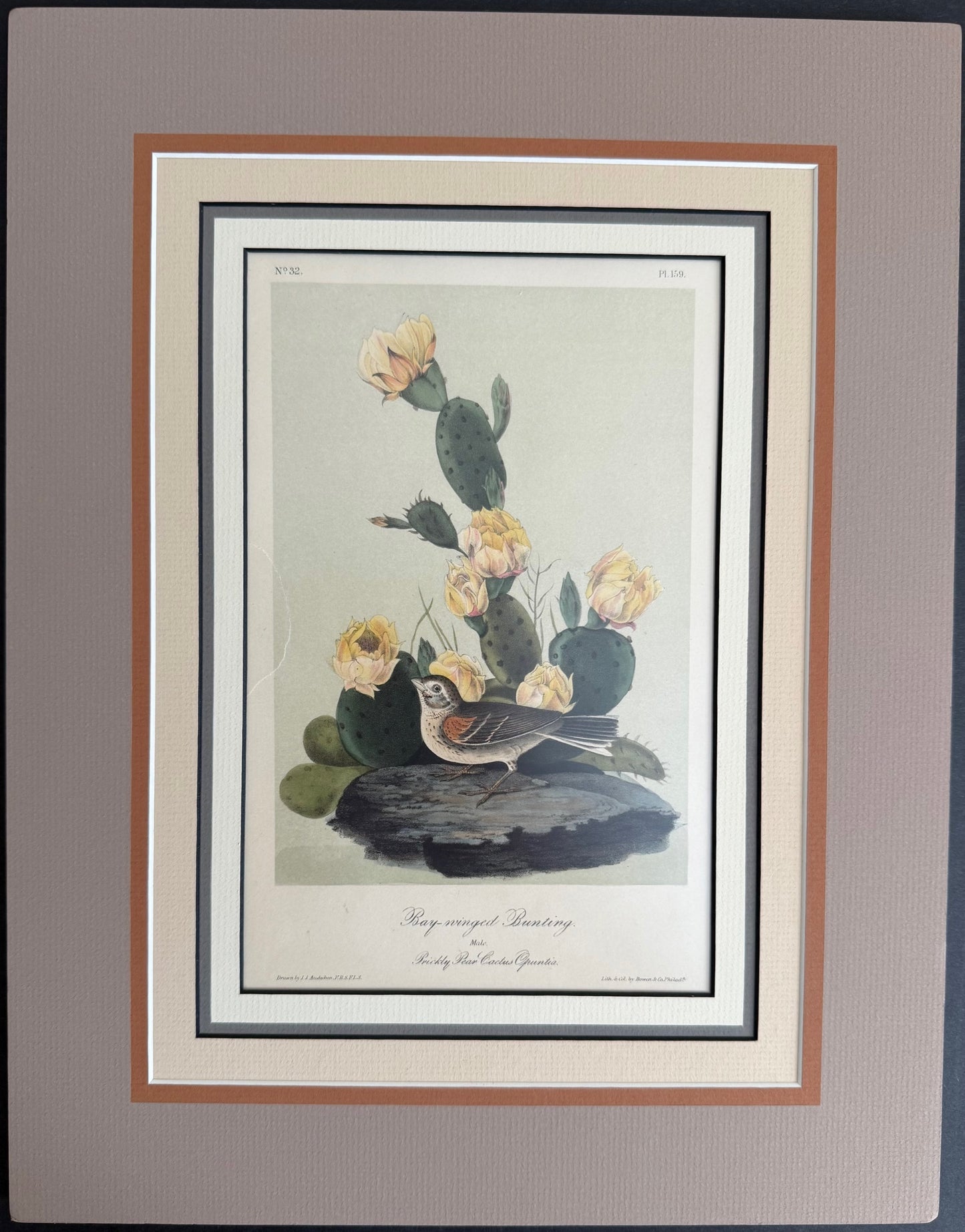 159 Audubon Original Octavo Bay Winged Bunting, 2nd edition, matted