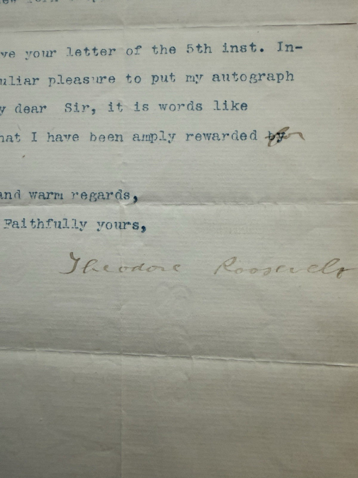 Signature: The letter features Roosevelt’s distinctive handwritten signature at the bottom.