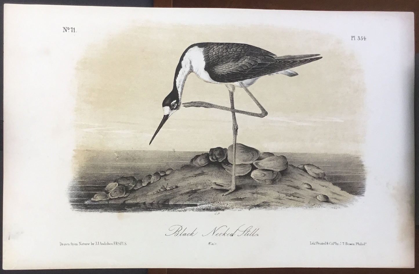 Audubon Octavo Black-necked Stilt, plate 354, uncolored test sheet, 7 x 11