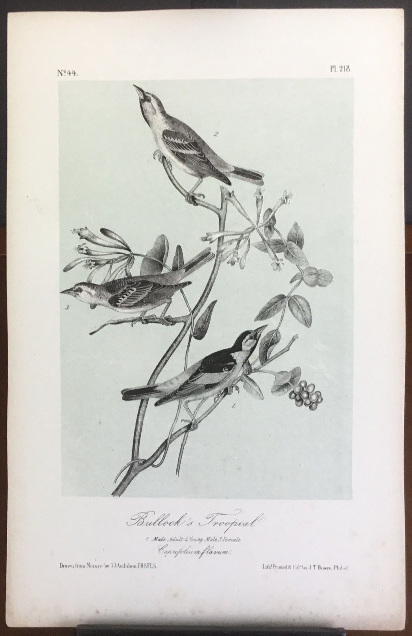 Audubon Octavo Bullock’s Troopial, plate 218, uncolored test sheet, 7 x 11