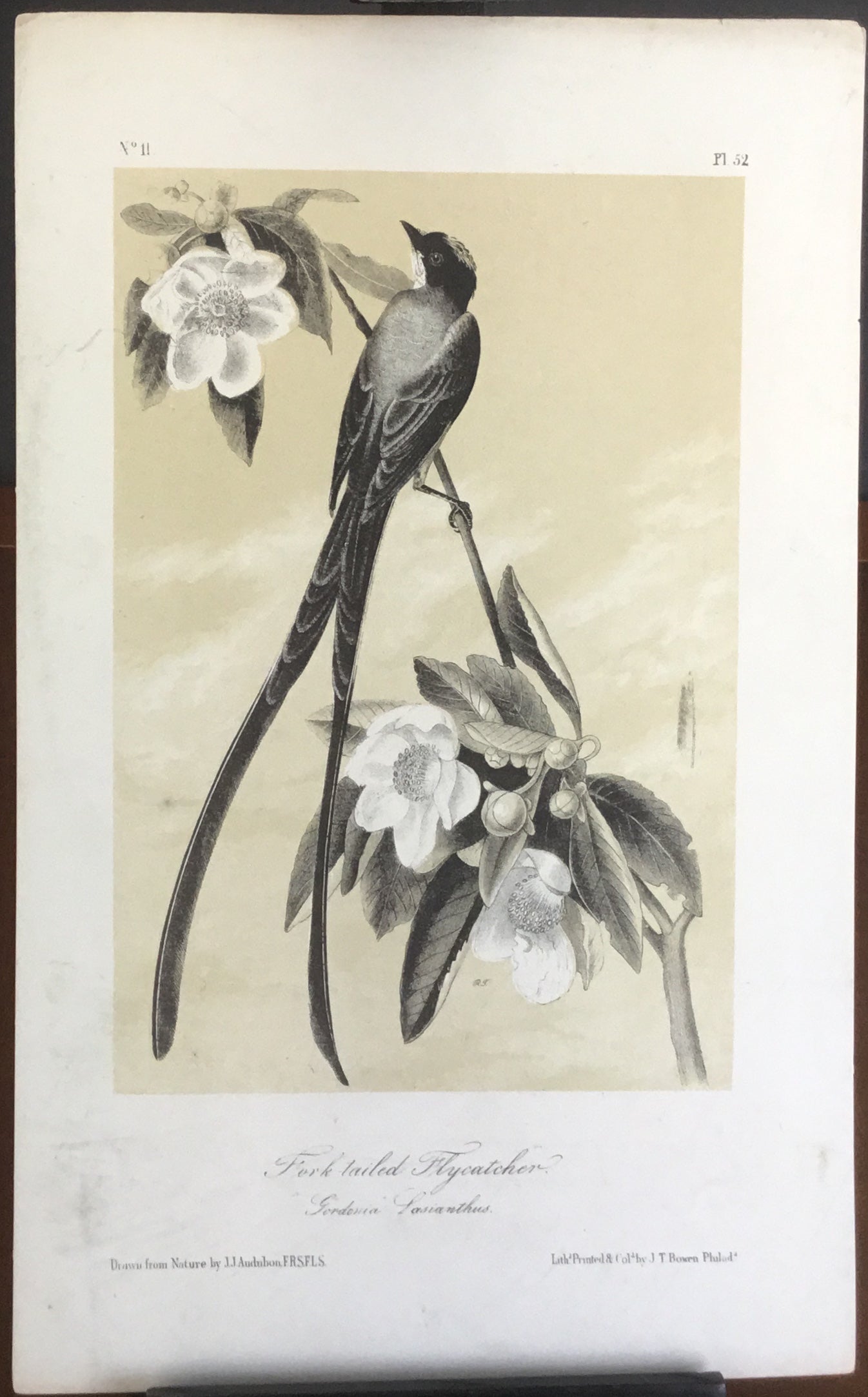Audubon Octavo Fork-tailed Flycatcher, plate 52, uncolored test sheet. 7 x 11