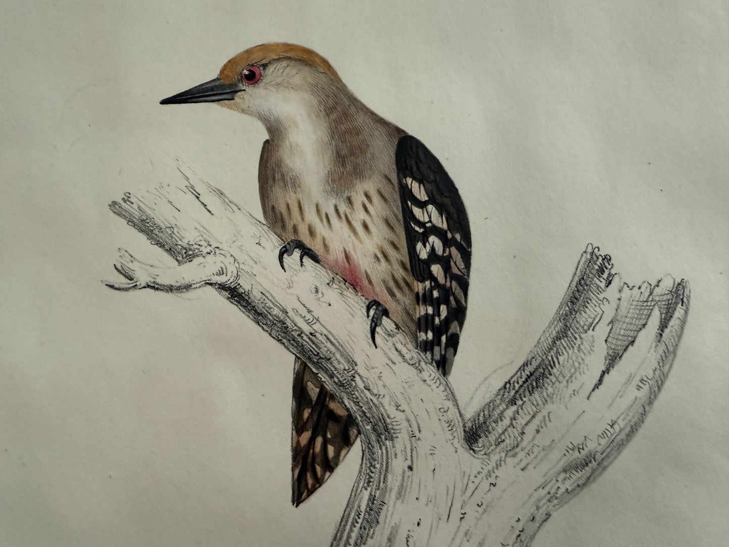 This species is similar to the red-bellied Woodpecker. The print was taken from the 1831 boon, A Century of Birds from the Himilaya Mountains. Very good condition.