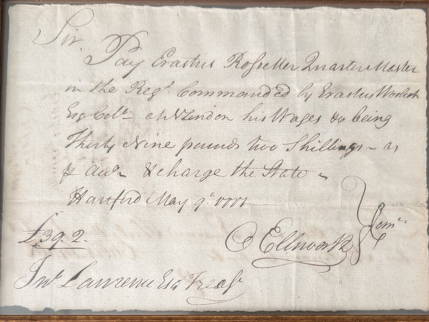 1777 Pay Order Signed By Ellsworth, Future Chief Justice Of Supreme Court