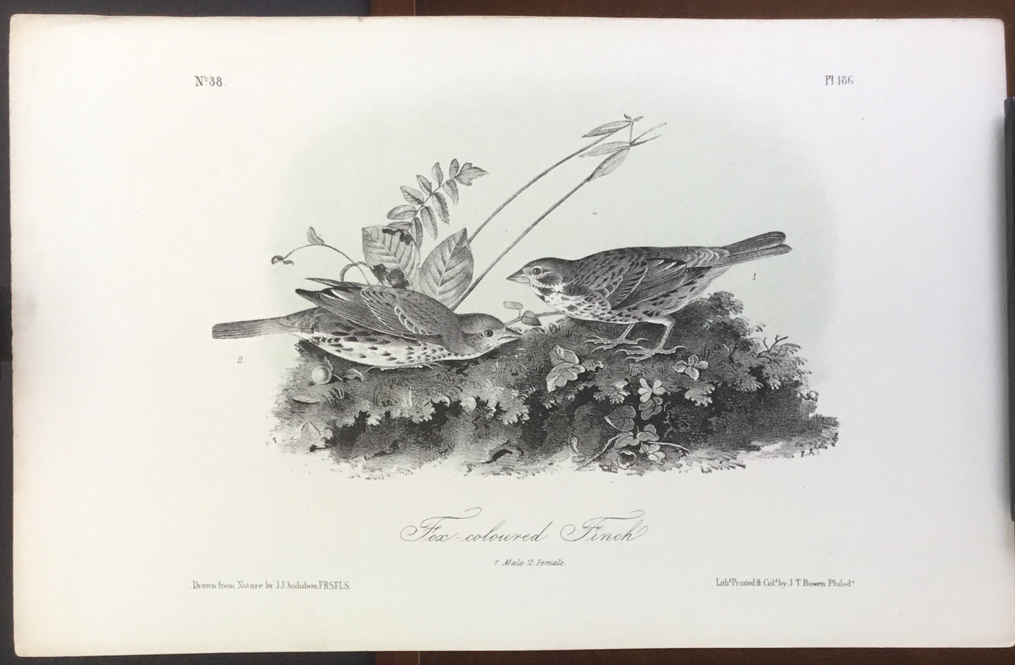 Audubon Octavo Fox-colored Finch (2), plate 186, uncolored test sheet, 7 x 11