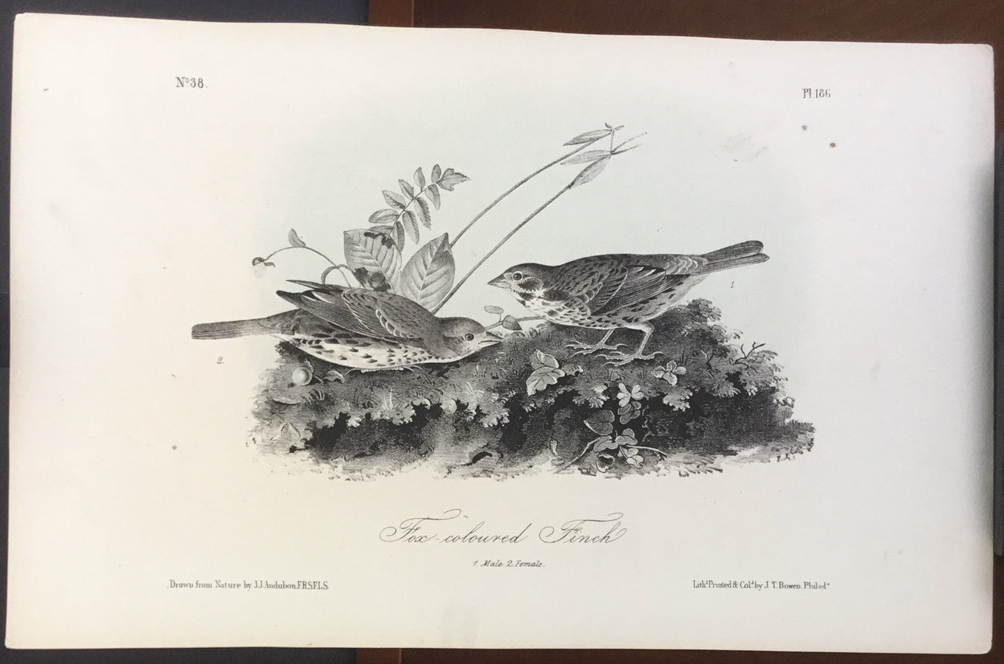 Audubon Octavo Fox-colored Finch, plate 186, uncolored test sheet, 7 x 11