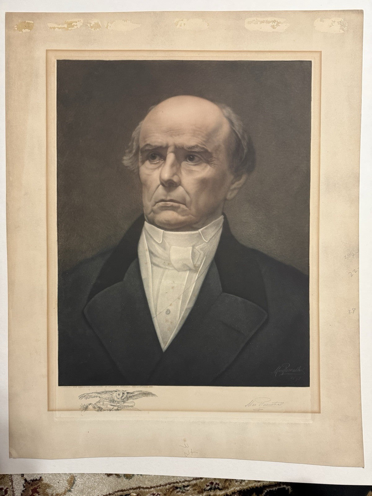 1897 Max Rosenthall mezzotint of Daniel Webster.