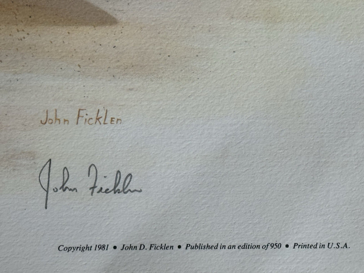 Artist: John Ficklen, who signed the print in the lower right corner.