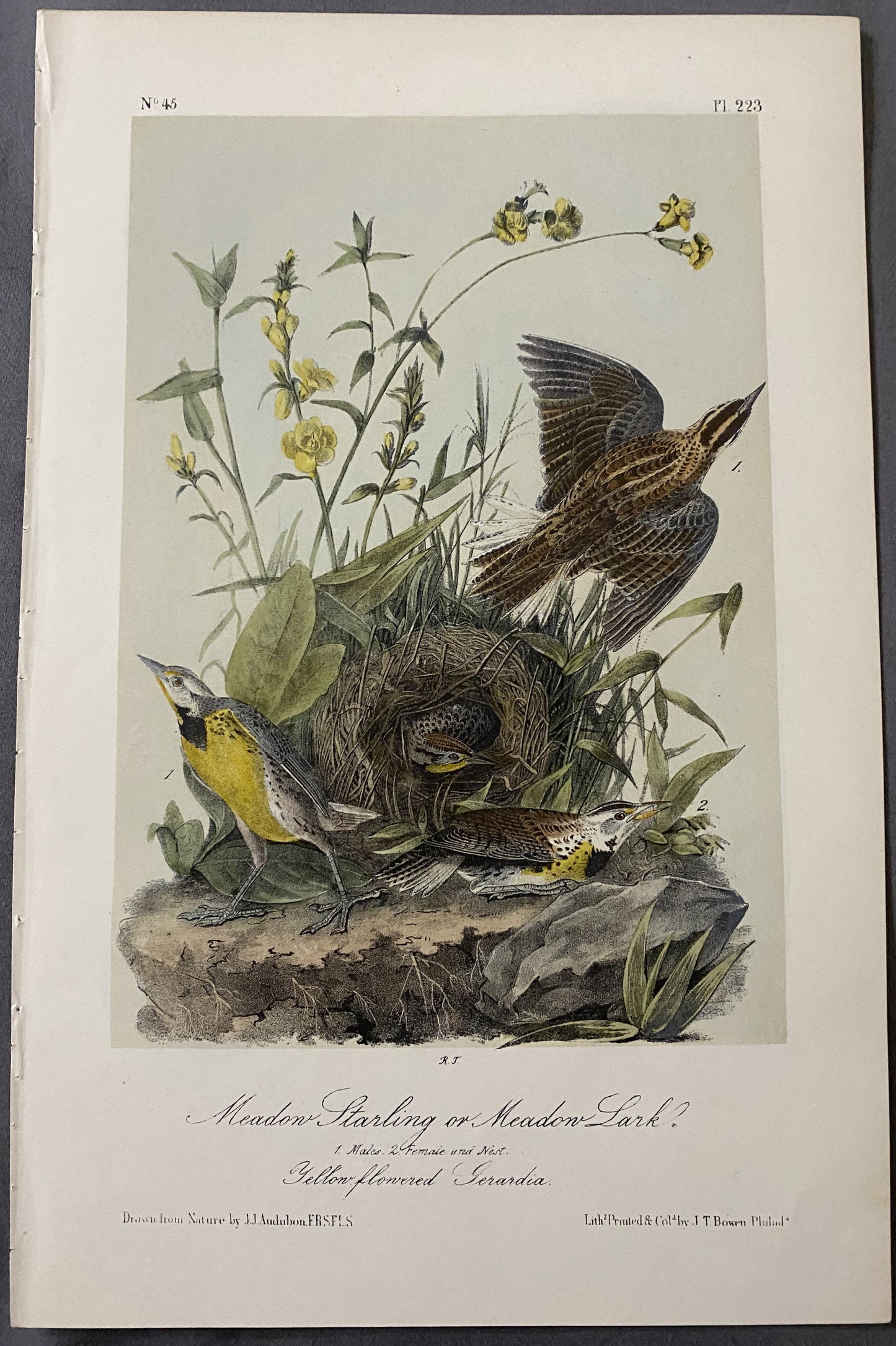📜Original Audubon Octavo Subsequent Edition Number 45 Plate 223, Meadow Lark